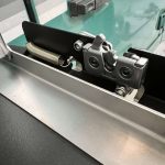 The table top is finished with powder coat in Mannex Black. It is equipped with Southco anti-burst latches, along with an additional safety latch to prevent unintentional opening. Pre-drilled holes are provided for standard recovery track mounting pins, and the package includes all necessary fasteners along with comprehensive fitting instructions.