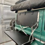 This drop-down table is specifically designed for the Defender 110/90. Constructed entirely from stainless steel, it features a unique hinge design that enables the table to lower to a convenient height for use.